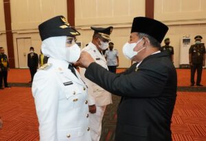 SOFIFI,Teluknews.com – Gubernur KH. Abdul Gani Kasuba, Lc secara resmi melantik Bupati dan Wakil Bupati Kepulauan Sula, Fifian Adeningsih Mus – M Saleh Marasabessy yang dilaksanakan di Aula Nuku lantai II kantor gubernur, Jumat (4/6).
