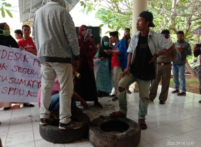 “Kami mendesak Pemda Kepsul untuk melalukan mediasi dengan CV Sumayyah Nur atau SPBU Kompak dengan pihak sub penyalur secara arif, bijaksana, profesional tanpa ada keberpihakan,” orasi Ketua Umum PMII Cabang Kepulauan Sula, Sahril Soamole.