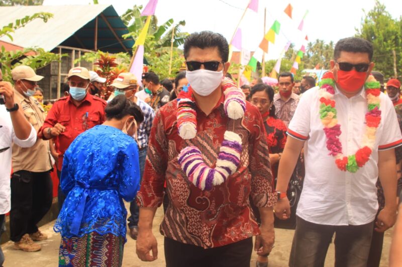 Bupati Halbar Danny Missy yang didampingi Ketua DPRD Charles Richard, para anggota DPRD, Forkompimda, serta pimpinan SKPD disambut sangat meriah, bahkan warga sangat antusias dalam melaksanakan acara sukuran persetujuan Mendagri tentang pemekaran Kecamatan Loteng.