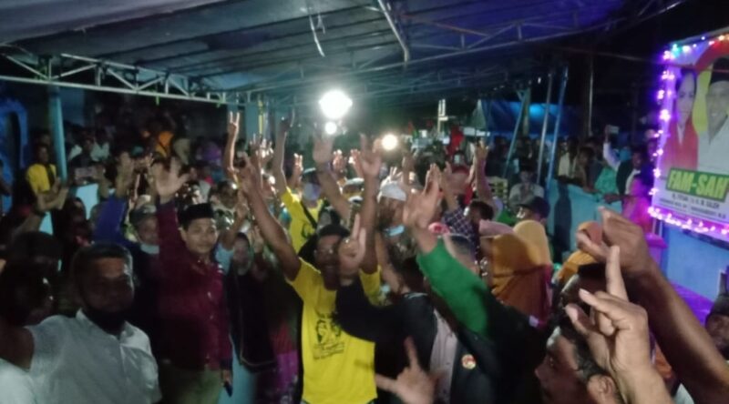 SANANA,Teluknews.com- Masyarakat Kecamatan Sulabesi Selatan, Kabupaten Kepulauan Sula (Kepsul) antusias mengikuti kampanye pasangan calon Bupati dan Wakil Bupati Kepsul Hj. Fifian Adeningsi Mus dan Hi. M. Saleh Marasabessy (Fam-Sah) di dua lokasi berbeda, yakni di Desa Waigai dan Desa Waitamua, Senin. (24/11/20) Malam.