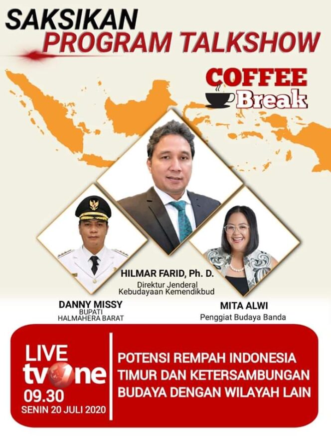 Emma panggilan akrab Chuzaemah menambahkan, program talkshow yang dibuat oleh Kemendikbud itu, Bupati Danny Missy akan menjadi pembicara bersama Dirjen Kebudayaan Kemendikbud Hilmar Farid, Ph.D dan Mita Alwi penggiat Budaya Banda. Tema yang akan dibahas pada program talkshow besok adalah potensi rempah indonesia timur dan ketersambungan budaya dengan wilayah lain.