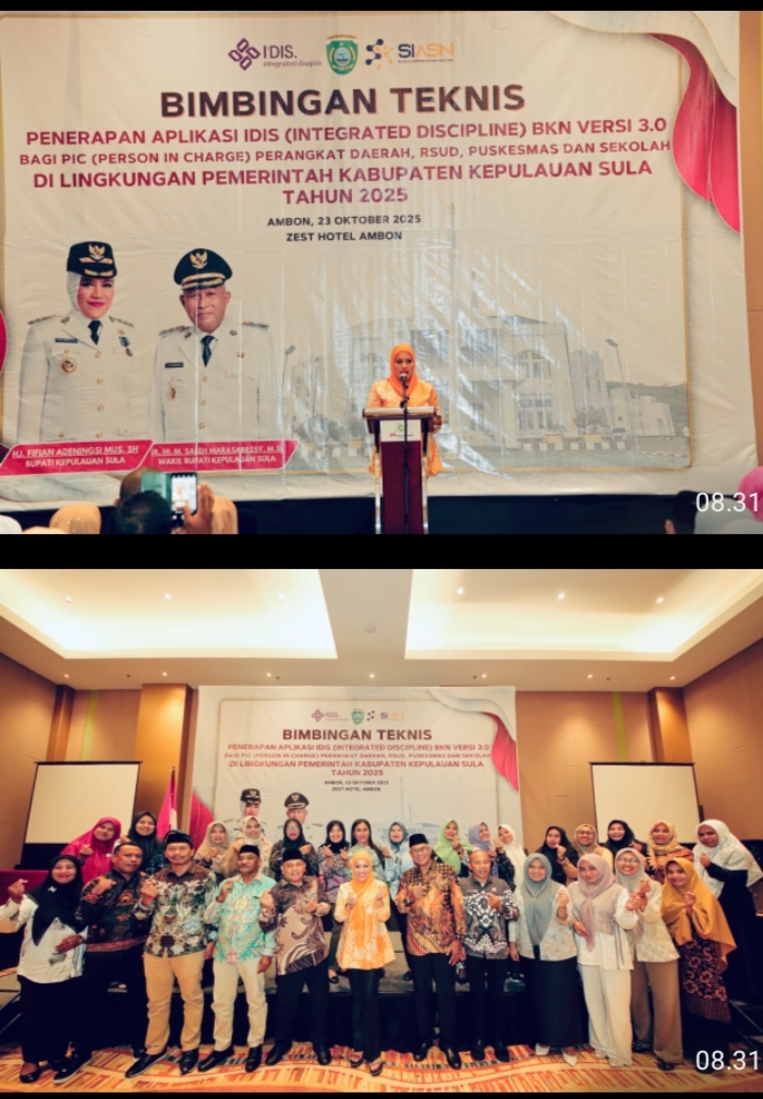 SANANA, Teluknews.com- Bupati Kepulauan Sula secara resmi menutup kegiatan Bimbingan Teknis (Bimtek) Aplikasi IDIS (Integrated Discipline) 3.0 yang diselenggarakan Badan Kepegawaian dan Pengembangan Sumber Daya Manusia  Kabupaten Kepulauan Sula dan BKN, di Ambon, Jumat (24/10/2025).